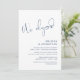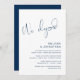 C'est la carte d'invitation de fête d'élopement de mariage, avec un design de script Navy Blue minimaliste / minimalisme classe (nous nous sommes enfuis)