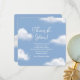 Célébrez la maman d'être avec un élégant carte de remerciements de baby shower nuage 9 qui combine élégance et charme. Le design crée une ambiance minimaliste et charmante pour l'événement, pour une journée remplie d'amour, de joie et de moments chéris. Utilisez les outils de conception pour customiser le texte et les polices. Parcourez notre collection de Baby showers Cloud 9 Blue Boy pour découvrir la décoration de la fête et des articles personnalisés.