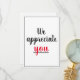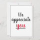 Une carte décontractée "Nous vous apprécions". Carte d'appréciation rouge et noir que vous pouvez rendre personnel avec un beau geste de la part du patron, collègue ou n'importe qui. Il vous suffit d'utiliser la fonction "personnaliser ce modèle" pour modifier le texte afin de le rendre le vôtre. Autres styles de papier disponibles.