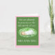 Un nouveau Faire-part pour bébé carte pour notes pour une petite fille, avec un bébé endormi et des lettres blanches sur un arrière - plan vert foncé, bordé de rose. L'intérieur est vide pour que vous puissiez ajouter les détails.