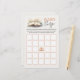 Faites un cadeau d'ouverture amusant avec cette carte de jeu Baby shower Bingo. Doté d'un livre ouvert aquarelle et d'une verdure délicate, les carrés sont comblés par des cadeaux qu'ils pensent que la future maman recevra. Au fur et à mesure que les cadeaux sont ouverts, ils marquent les boîtes — le premier à obtenir cinq de suite gagne! Un baby shower préféré pour votre thème Un nouveau chapitre.