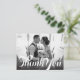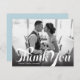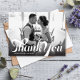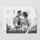 Un script de style vintage et un dégradé foncé recouvre votre photo mariage préférée note de gratitude. Utilisez l'espace vide sur le dos pour écrire un message personnel à vos amis et à votre famille. Ce design peut être adapté à la disposition de photos de paysages ou de portraits.