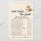 Apportez des sourires et des surprises douces à votre douche nuptiale avec ce He Said, She Said - New Chapter Book Edition. Conçu pour correspondre à un thème littéraire ou "Nouveau Chapitre commence" douche nuptiale, ce jeu de charme comporte des questions amusantes et des citations ludiques où les invités devinent si la mariée ou le marié l'a dit. Avec des graphismes élégants inspirés du livre et un texte personnalisable, c’est un brise-glace parfait pour les épouses amoureuses de livres et les conteurs romantiques. Idéal pour les douches nuptiales, les fêtes de fiançailles ou les dîners de répétition, ce jeu imprimable ajoute une touche réfléchie et légère à votre célébration.