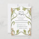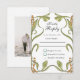 Célébrez votre union avec une envolée de nature et d'art avec notre carte de réponse de mariage Floral Symphony inspirée de l'Art nouveau. Le devant de celle-ci présente un arrangement luxuriant et symétrique de fleurs épanouies dans une riche palette de couleurs pastel, comprenant des tulipes corail, des campanules bleu ciel, des fleurs de pêcher et des jaunes de jonquilles, le tout entrelacé de manière complexe avec des feuilles vertes luxuriantes. Ce design s'inspire du mouvement Art nouveau, réputé pour ses formes naturelles stylisées, ses courbes fluides et ses couleurs douces et atténuées. Conçu pour les couples qui souhaitent insuffler à leur journée spéciale la beauté de la nature et la sophistication classique de l'art du début du XXe siècle.