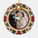 Célébrez votre premier Noël en couple marié avec cet ornement magnifiquement conçu. Doté d'une photo mariage romantique encadrée par des accents de saints et de cloches festifs, ce gardien rayonne d'élégance et de joie de fêtes. L'envers comprend un message sincère, parfait pour commémorer cette étape importante. Une décoration intemporelle pour votre arbre et un souvenir chéri pour les années à venir. Idéal comme cadeau ou trésor personnel pour les jeunes mariés.