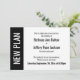 Voici une carte audacieuse et moderne pour avertir vos invités s'il est nécessaire de changer votre date de mariage. Utilisez les champs modèles pour ajouter vos détails personnels et faire de cette conception unique et simple votre propre. Un bloc de couleur sur la gauche est noir, correspondant au texte et à l'arrière de la carte ; "NOUVEAU PLAN" apparaît en gras blanc sur cette bande sur la gauche. Toutes les polices et couleurs sont également modifiables. Veuillez communiquer avec toute demande spéciale ou customiser de l'aide. D'autres pièces avec un autre libellé sont également disponibles dans la collection.