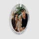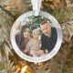 Nouveau style moderne, double face, deux photos, ornement acrylique rond. Sur le devant, ce design décoratif personnalisé présente votre photo personnelle surlignée dans un cadre délicat et dégradé blanc unique. Les modèles de typographie moderne affiche votre nom de famille et l'année ou peut être édité pour lire ce que vous voulez. Le texte est dans une couleur de bronze chaud qui peut également être facilement édité à n'importe quelle couleur de votre choix. Le dos de l'ornement affiche entièrement votre deuxième photo. Le cadeau parfait de conservation et la décoration arborée pour les vacances et Noël.