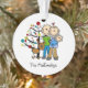 Un adorable ornement en acrylique figurine figurine de Noël avec un personnage en bâton nouveau père et mère tenant un bébé dans une couverture bleue et le chien de famille devant un arbre de vacances décoré. Il dispose également d'une zone où vous pouvez ajouter votre nom de famille avant de commander. L'ornement en arrière présente le même design avec un espace que vous pouvez facilement customiser pour dire Noël 2014 ou l'année en cours. Ce joli bâton figuré Noël ornement acrylique de vacances sera chéri pendant des années à venir!