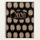 Noir et or Golden Four Leaf Clovers Motif unique Élégant moderne Planificateur hebdomadaire ou mensuel Année 2020