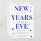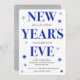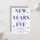 Invitation du réveillon du Nouvel An avec bleu brillant et argent sur un arrière - plan de papier blanc. Customisez avec tous vos détails pour informer les gens de votre événement!