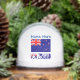 Le globe de neige présente le drapeau néo-zélandais avec les mots NOUVELLE-ZÉLANDE ci-dessous dans les couleurs du drapeau kiwi. Ci-dessus, un endroit pour mettre son nom, en lettres bleues, et ajouter une touche personnalisée. Ou, créez un cadeau pour ceux d'ascendance néo-zélandaise en ajoutant le nom de quelqu'un d'autre. Faites un cadeau de vacances amusant ou le rembourrage de bas.