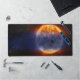 Illustration de l'artiste d'un nuage géant d'hydrogène gazeux qui s'écoule hors de la planète GJ 3470b, à seulement 97 années-lumière de la Terre. L'exoplanète est minuscule par rapport à son étoile, un nain rouge nommé GJ 3470. Le rayonnement intense de l'étoile réchauffe l'hydrogène dans l'atmosphère supérieure de la planète à un point où il s'échappe dans l'espace.