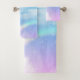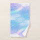 Serviette sertie d'une douce et belle image arrière - plan. Le bleu pastel et les nuages roses avec un arc-en-ciel magique.
