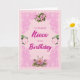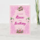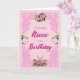 Une jolie carte d'anniversaire pour une nièce. Une élégante traçerie en ensembles roses des quatre roses roses. L'arrière - plan est un motif de fleurs rose pâle. Une belle carte à envoyer à une nièce pour son anniversaire.