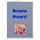 Photographie "de Heather rose" sur un arrière - plan bleu avec le texte bleu : "Nuit de brûlures !"