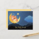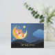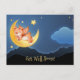 Get Well Bientôt Postcard présentant une illustration rêveuse avec un mignon ours ange sur la lune dans un joli paysage nocturne bleu.
