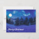 Nuit d'hiver magique avec pleine lune et gelée couverte de sapins neigeux et d'épinettes en hiver. Nuit étoilée. Forêt neigeuse la nuit au clair de lune.