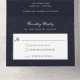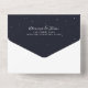 Ce faire-part de mariage moderne et élégant est parsemé d'étoiles délicates sur un arrière - plan bleu foncé.