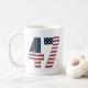 This mug features the number "47" adorned with a stars and stripes design, reminiscent of the American flag. This mug is perfect for celebrating milestones, whether it's the 47th birthday of a loved one, the 47th President, or honoring a favorite athlete's jersey number. The colors and patriotic theme makes it a great gift for anyone who loves their American pride or enjoys a touch of unique flair in their morning routine. Whether you're sipping coffee, tea, or any beverage of choice, this mug is a stylish statement piece that embodies celebration and camaraderie.