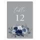 Habillez vos tables de mariage ou de fête avec votre carte de numéro de tableau bleu et gris floral marine. Fabriqué à la main peint, en aquarelle, fleurs bleues poussiéreuses et fleurs bleu marine. Idéal pour les mariages rustiques, les mariages de automne, les mariages d'hiver, les mariages sur la plage et les mariages à thème bleu.