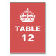 Cartes de numéro de table rouge avec la couronne "Keep Calm and Carry On". Cliquez sur "Customiser!" puis sur "Modifier" pour changer l'arrière - plan en couleur.