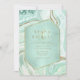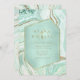Vous obtenez à la fois le glamour et l'impact élevé avec cet ensemble de mariage de coordination qui comprend des motifs d'agate abstraits, texturés avec des faux cristaux et des reflets dans un film d'or scintillant. Des combinaisons de couleurs éclatantes, comme cette suite avec sa palette pastel douce du vert menthe au bleu turquoise, créent l'arrière - plan pour les pièces de cette collection coordonnée. Cette élégante invitation de mariage présente tout ce qui précède avec un étiquette hexagone, semi-transparent dans les tons de menthe, pour tenir votre texte. Un modèle est à votre disposition pour ajouter facilement les détails de votre événement. Affichez le lien de collection sur cette page pour voir tous les éléments correspondants dans cette belle conception ou recherchez ID827 pour voir des choix de couleurs supplémentaires pour cette conception.