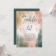 Une carte élégante, moderne et chic de numéro de siège mariage dans un thème d'automne rustique. Un pinceau complexe brush d'or miel, vert forêt et arrière - plan d'orange rouille. Personnalisez le numéro de siège et le nom du siège réservé.