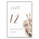 This elegant wedding table number card features blush 3D boho flowers on a white background.