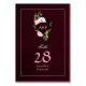 Carte de numéro de table du 40e anniversaire du mariage avec une pierre de taille en rubis monogrammée ornée de fleurs de prune rose rousse et bordeaux profondes et de pierres géométriques.