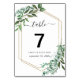 Numéro de table à cadre en or avec eucalyptus et verdure à l'aquarelle. Articles assortis disponibles.