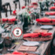 Cartes de numéro de table de mariage noir et blanc argenté avec garniture rouge