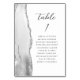 Le bord gauche de cette élégante carte de numéro de table mariage moderne comporte une bordure en aquarelle gris et blanc, ornée d'une parties scintillant en faux argent. Le mot "table" apparaît dans le script d'écriture manuscrite gris charbon sur un arrière - plan blanc. Ajoutez les noms de vos invités qui sont affectés à chaque table.
