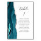 Le bord gauche de cette élégante carte de numéro de table mariage moderne comporte une bordure turquoise en aquarelle bleue, ornée d'une parties scintillant en faux argent. Le mot "table" apparaît dans le script d'écriture manuscrite gris charbon sur un arrière - plan blanc. Ajoutez les noms de vos invités qui sont affectés à chaque table.