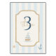 Guidez vos invités avec élégance grâce à cette carte de numéro de table au thème nautique, idéale pour une fête d'anniversaire d'inspiration marine. Avec un arrière - plan rayé bleu pastel et blanc, cette carte à plat comprend un voilier aquarelle reposant sur des vagues douces, un cadre ovale classique et une police marine serif audacieuse lisant "Tableau 1". Accentué d’un petit détail d’ancrage, il s’agit d’un joli ajout à votre paysage de table à thème. Idéal pour les fêtes d’anniversaire, les baby showers ou les événements en bord de mer pour les enfants - faites correspondre les invitations, les tasses et la signalisation pour un look cohésif !