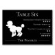 Un numéro de table drôle et unique. Parfait pour les animaux de compagnie et les amoureux de les chiens, ce numéro de table monochrome noir et blanc fait partie d'une collection de races de chiens multiples. La carte lit le numéro du tableau, suivi par The Poodles, et une image de contour blanc d'un Poodle. Pour plaisanter sur la personnalité des invités, quatre traits de chien sont listés, y compris la convivialité envers les étrangers, le potentiel de baver, la tendance à aboyer, hurler et jouabilité, à côté d'une note sur cinq étoiles. La carte de table convient à un mariage, à une fête ou à tout autre événement qui nécessite un plan de siège.