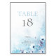 Carte de Numéro de Table de Mariage | Éclaboussure aquarelle dans des nuances de bleu avec des anémones bleu clair. Personnalisez le texte, le style de police, la couleur et la taille. Design créé pour le BarefootBride™ par © WhimsicalArtwork™ - Cela fait partie d'une suite complète de papeterie de mariage avec papeterie de mariage, de baby shower et d'autres événements correspondants.