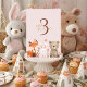 Numéro De Table Animaux des bois Anniversaire rose rustique