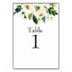 Numéro de tableau de texte noir. Aquarelle Floral blanc & Foliage.
