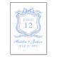Numéro De Table Aquarelle Designer Blue Monogram Crest Mariage