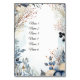 Le design se compose d'un agencement doux et éthérée de tons terreux bleu poudreux et muets, avec feuillage délicat, baies et fleurs encerclant les bords. Le cadre est principalement décoré de feuilles à l'aquarelle, de fleurs de coton et de baies foncées, ce qui lui confère une atmosphère rustique mais élégante. La zone centrale est laissée en blanc, idéale pour les détails du texte ou de l'événement, entourée de formes organiques qui évoquent une atmosphère sereine et automnale. Ce motif sophistiqué et d'inspiration nature s'appliquerait à une collection mariage avec une atmosphère romantique et intemporelle.