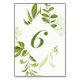 Numéro De Table Aquarelle Folithe vert sauvage Table Numéro 6 Cart