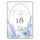 Carte de Numéro de Table de Mariage | Fleurs d'aquarelle lavande fraîches et propres du printemps avec des fleurs bleues poussiéreuses et des baies. L'envers est une couleur coordonnée complémentaire. Personnalisez le texte, le style de police, la couleur et la taille. Conception créée pour le BarefootBride™ par © WhimsicalArtwork™ - Cela fait partie d'une suite de papeterie de mariage complète avec des invitations de mariage, de baby shower et d'autres événements.