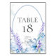 Carte de Numéro de Table de Mariage | Fleurs de lavande aquarelle fraîches et propres de printemps avec des fleurs bleues poussiéreuses et des baies. Le verso est d'une couleur coordonnée complémentaire. Personnalisez le texte, le style de police, la couleur et la taille. Design créé pour BarefootBride™ par © WhimsicalArtwork™ - Cela fait partie d'une suite de papeterie de mariage complète avec des invitations de mariage, de baby shower et d'autres événements.
