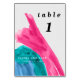 Cartes de numéro de table de mariage en aquarelle rose chaud, faisant partie de notre collection moderne de papeterie mariage en aquarelle.