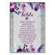 Présentant la superbe aquarelle violette fleurie & argent parties scintillant design mariage, parfait pour les couples qui cherchent à ajouter une touche de romantisme et de sophistication à leur journée spéciale. Le motif floral délicat de l'aquarelle dans les tons violet, lavande, violet et violet aubergine apporte un sens de beauté et d'élégance à tout thème mariage, qu'il s'agisse d'un mariage de printemps ou d'un mariage d'hiver. Les couleurs vives de la conception florale printanière sont assurées de compléter n'importe quel jeu de couleurs mariages, ce qui en fait un choix polyvalent et intemporel. L'ajout de parties scintillant argentée apporte une touche de glamour et d'éclat, ce qui en fait un lieu de séjour idéal pour les couples qui souhaitent ajouter un peu d'éclat à leur décoration mariage. La combinaison du motif floral aquarelle et de la parties scintillant argentée crée un beau contraste, ce design mariage est vraiment unique et inoubliable. Que vous soyez à la recherche d'un thème mariage romantique ou que vous souhaitiez ajouter une touche de fantaisie à votre journée spéciale, le design de la mariage à l'aquarelle violette fleurie et argent est le choix idéal. Avec son élégance intemporelle, ses couleurs vives et sa parties scintillant argentée scintillante, il fera de votre mariage une journée inoubliable.