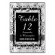 Le traditionnel chic élégant gris argent et noir vintage mariage damask numéro de table personnalisée avec des notes musicales entourent, sur arrière - plan noir, personnalisez avec votre texte aux modèles pour vos occasions spéciales ou célébrations. Visitez le magasin de _MARIAGES PERSONNALISÉ pour trouver des produits correspondants.