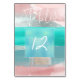PixDezines carte de numéros de table avec l'art moderne. Aquarelles tendance en rose vif, aqua, turquoise, sauge, faux argent menthe et or rose. Tous les éléments sont modifiables y compris le étiquette iridescente, on peut le remplacer par n'importe quelle forme disponible dans les outils de conception. Copyright © 2019 PixDezines™. Tous droits réservés.