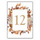 Numéro De Table Automne Terracotta Feuille Mariage botancien