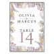 Numéro De Table Automne Tropique Feuilles Mauve Or Aquarelle