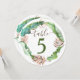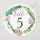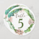 Un simple panneau de numéro de table aux feuilles tropicales vertes et brunes est magnifique pour une réception de mariage sur le thème de l'île. Le design aux feuilles de bananier vertes aquarellées et aux feuilles de fougère brunes est polyvalent pour une variété de signalisations de table pour le dîner. Transférez facilement l'artwork de mariage sur le thème de la plage à une gamme de cartes et de panneaux.